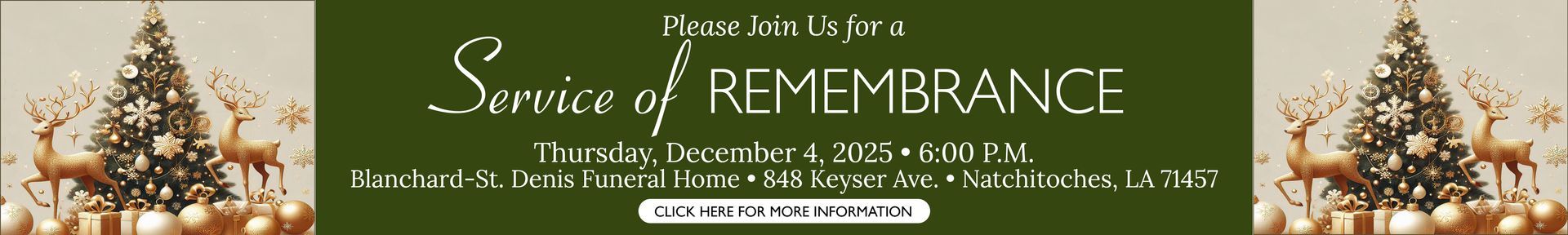 Thank you for visiting our website. For over eighty years, we have been serving our community and are Natchitoches Parish's longest continuously owned and operated funeral home. Our funeral home is family owned and has a wonderful staff of caring professionals. Families have trusted Blanchard-St. Denis for generations.